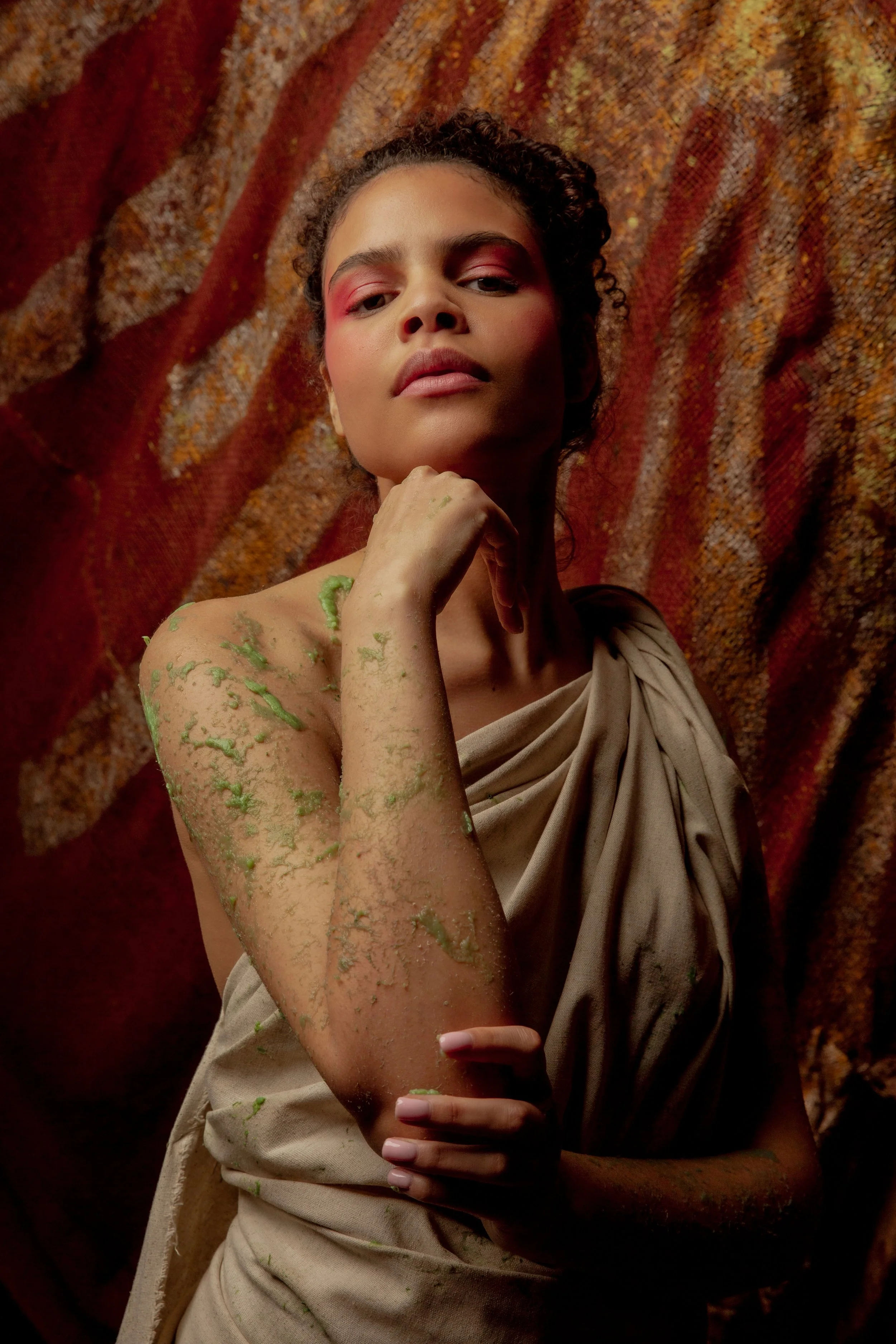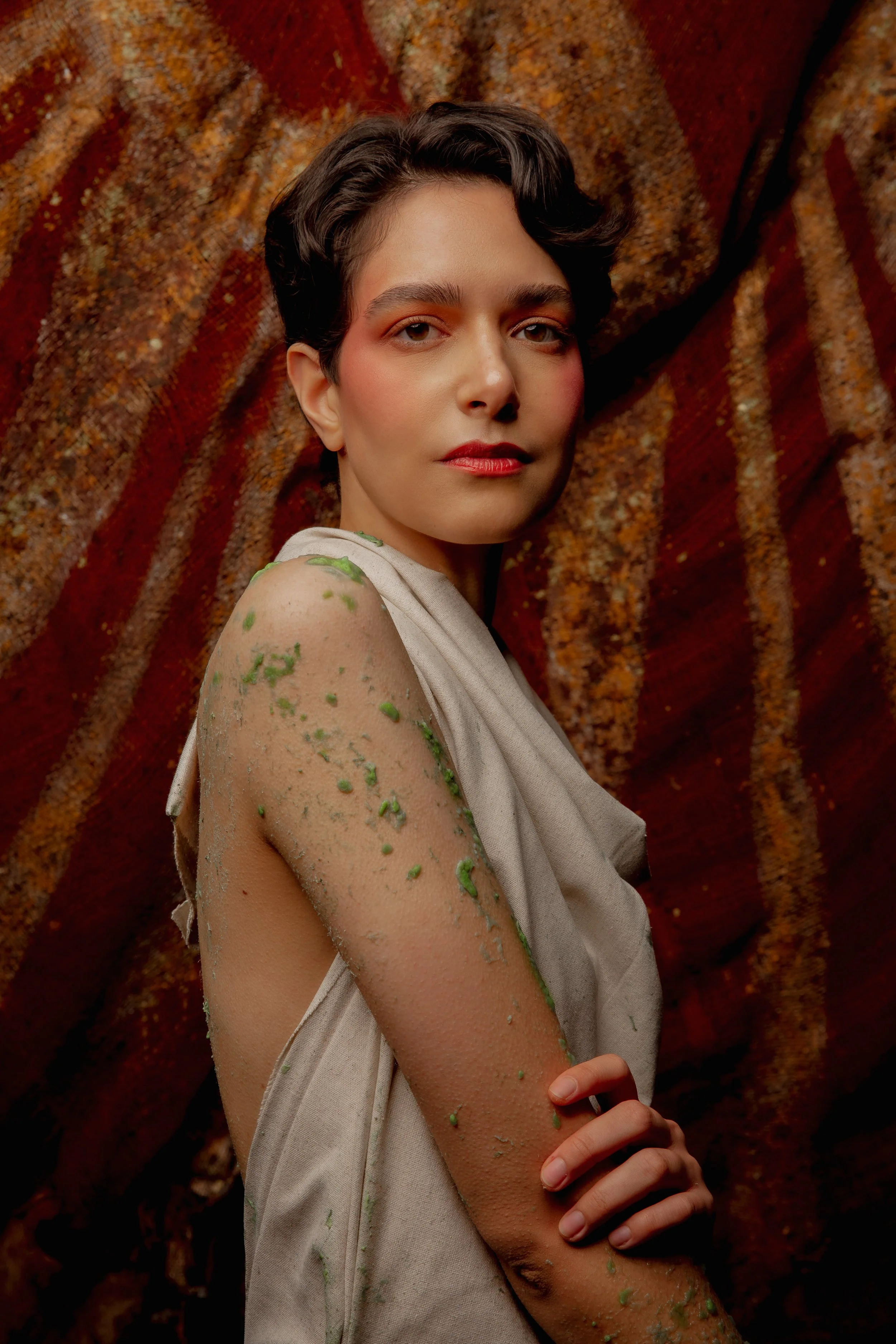 Photosynthetic Human imagines a future in which the human body becomes an active participant in ecological restoration. By merging living microalgae with the skin through a translucent bio-gel, the body is transformed into a wearable photosynthetic system, capable of producing oxygen through light. This work merges science, design, and speculative fashion to propose a new form of symbiosis between human and environment: one where we don’t just consume, but contribute.